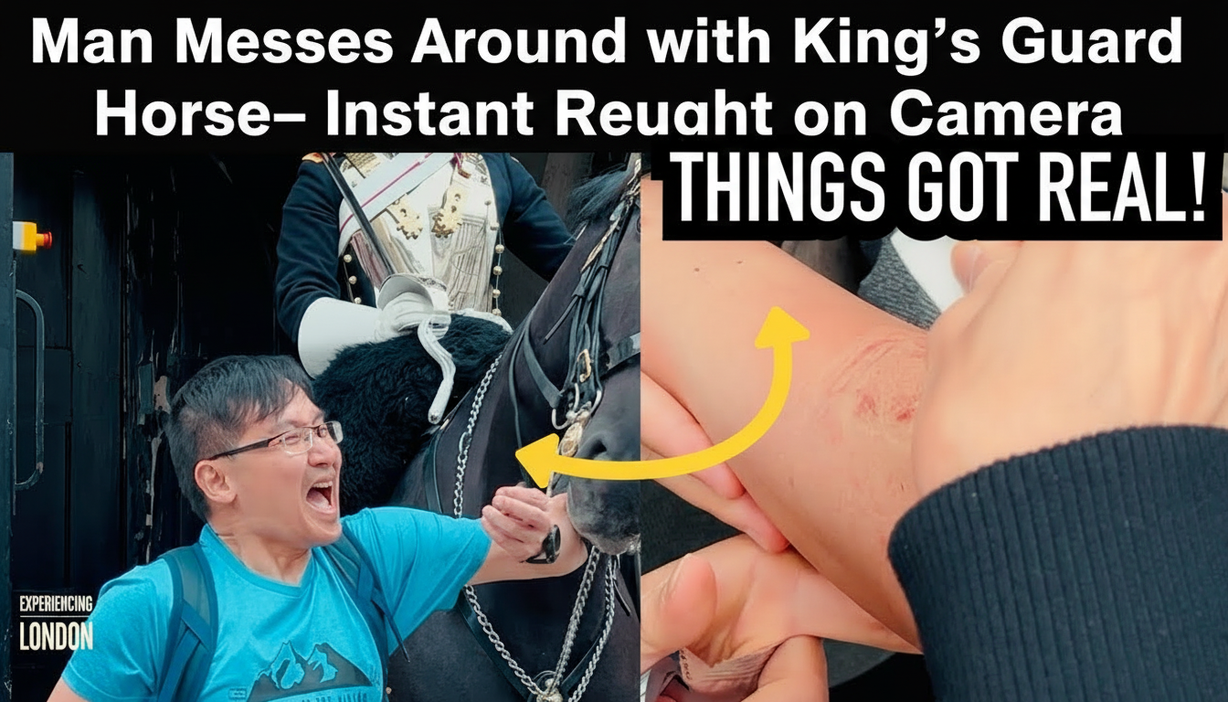 A viral moment at London’s Horse Guards Parade is grabbing attention after a man decided to “mess around” near a King’s Guard horse—and immediately faced the consequences. The dramatic scene has sparked widespread reactions online, serving as yet another reminder that these iconic guards and their horses are not to be taken lightly.