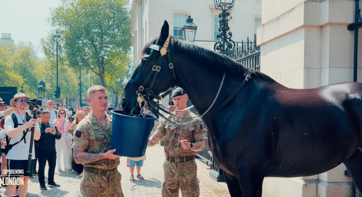 A powerful and reassuring moment at Horse Guards Parade has captured attention online, showing a King’s Guard horse being given water and carefully rubbed down during intense summer heat. The clip, lasting around eight minutes, highlights the level of care and responsibility taken to ensure the wellbeing of these iconic ceremonial animals.