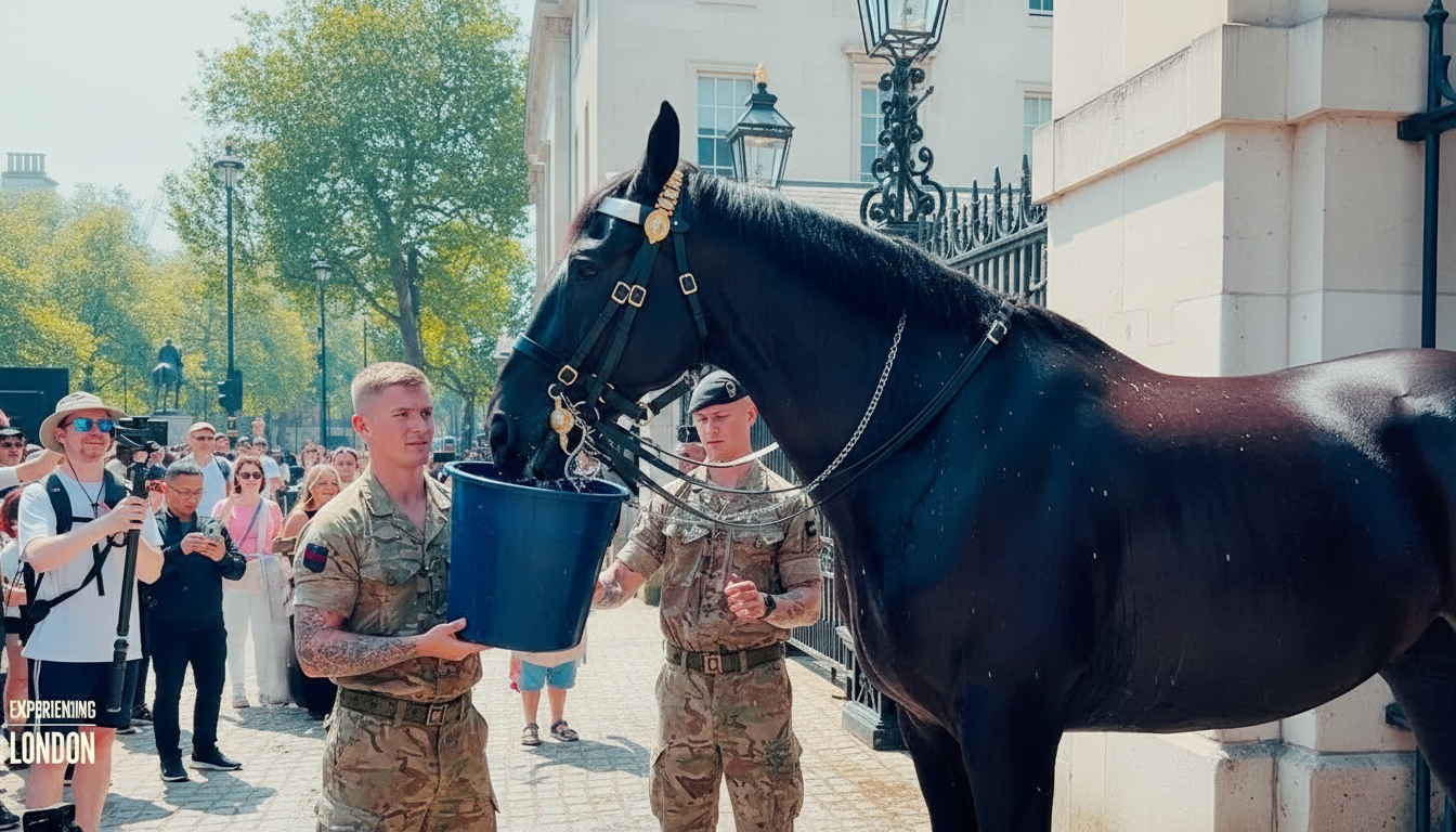 This viral moment not only reassures the public but also emphasizes an important message: these horses are well cared for, even in challenging conditions. Watching them receive water and relief in the scorching heat shows the balance between tradition and responsibility—something that continues to define the experience at Horse Guards Parade.