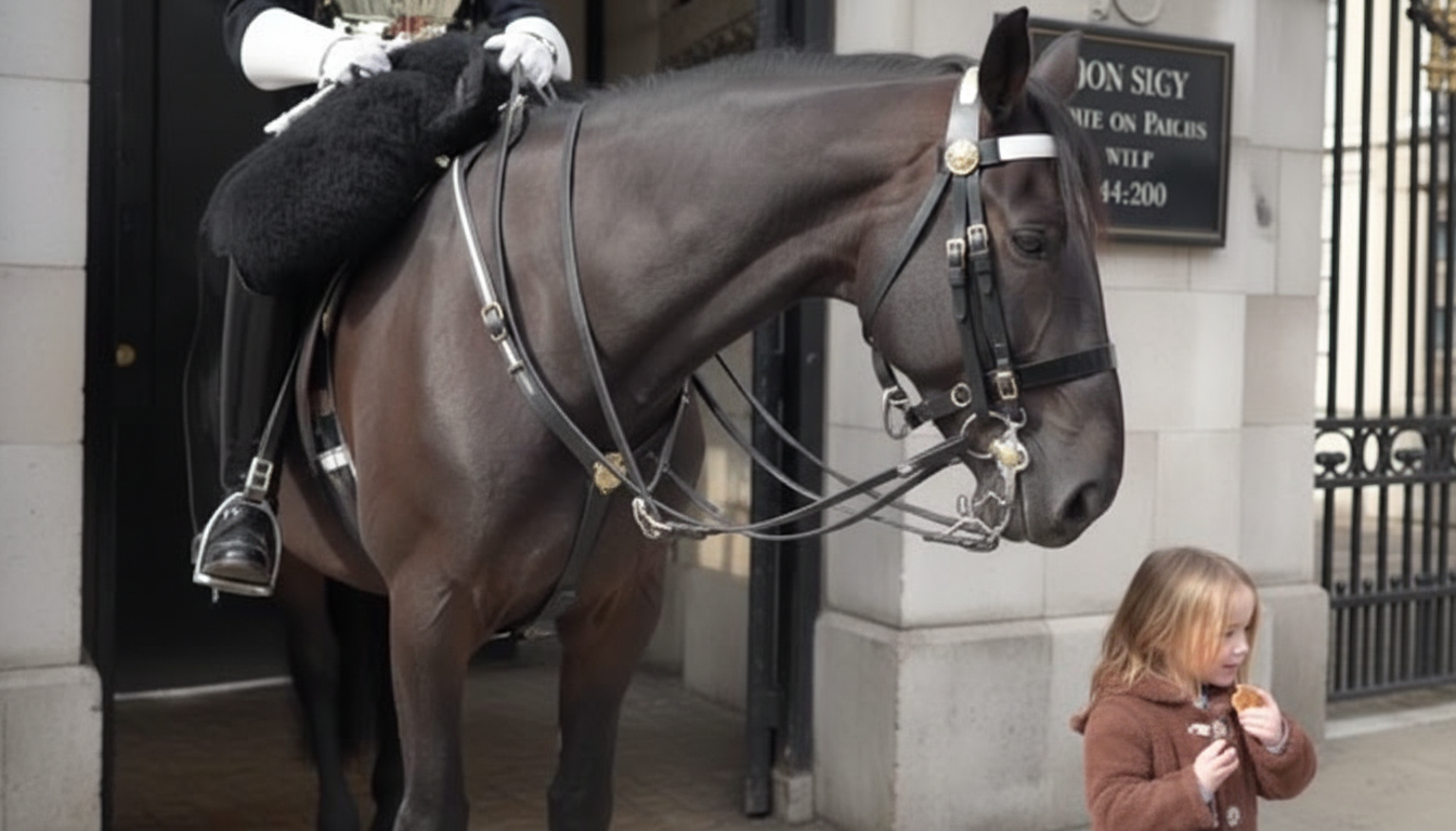 A heartwarming moment at Horse Guards Parade has captured attention online, showing a young girl sharing a gentle and unforgettable interaction with a King’s Guard horse. The touching scene has quickly gone viral, with viewers praising the innocence and calmness of the encounter.