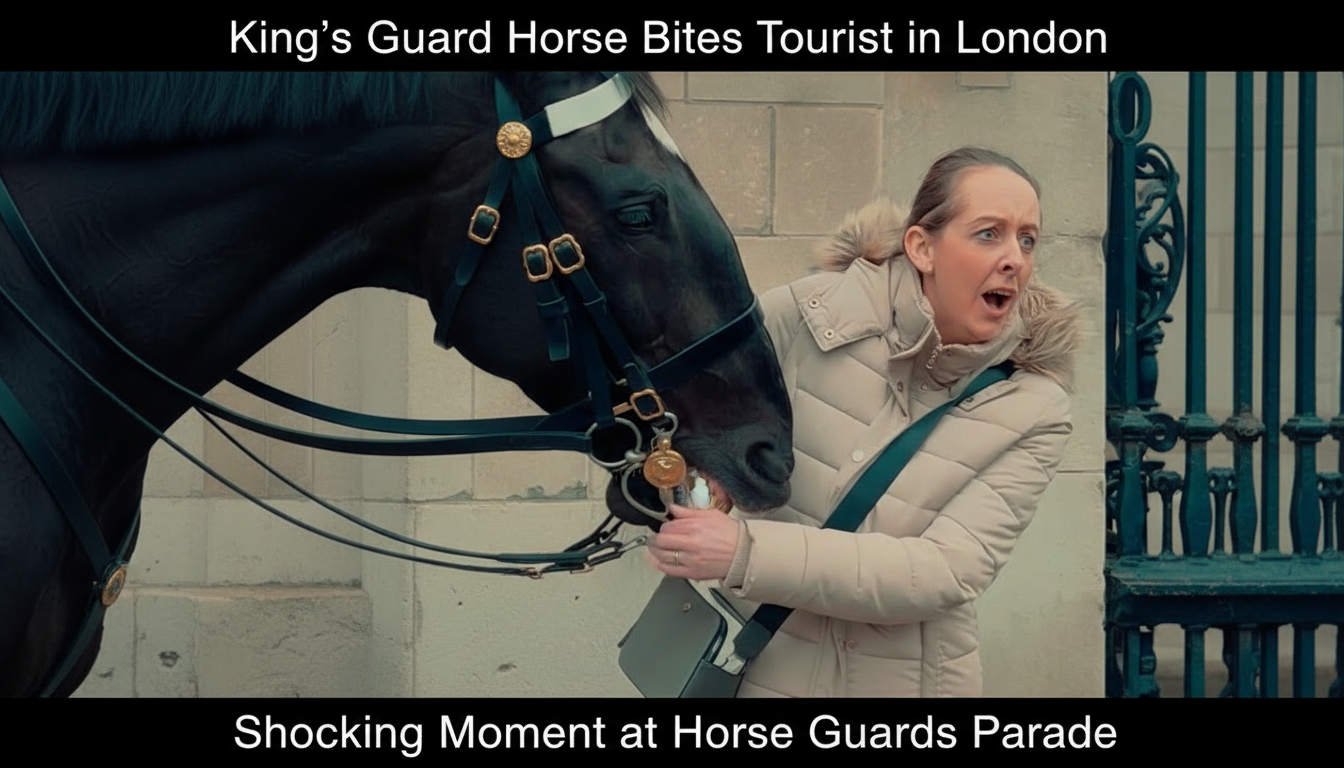 A shocking incident at Horse Guards Parade has gone viral after a King’s Guard horse suddenly bit a tourist, leaving the individual in visible pain. The dramatic moment, captured on camera, has sparked widespread reactions and renewed warnings about respecting boundaries around these powerful animals.