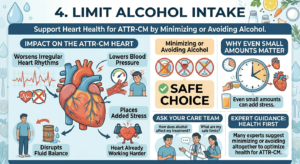 Alcohol can interfere with heart health in several ways. It may worsen irregular heart rhythms, disrupt fluid balance, and lower blood pressure. For people with ATTR-CM, these effects can be especially concerning.