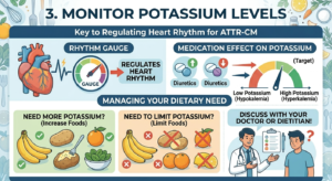 Potassium is an essential mineral that helps regulate heart rhythm, but its balance can be tricky in this condition. Many people with ATTR-CM take diuretics to manage fluid buildup, and these medications can either increase or decrease potassium levels.