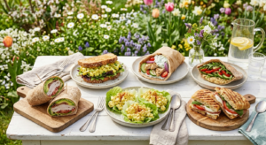 Turkey and Avocado Club Wrap: Sliced turkey breast, bacon (or turkey bacon), avocado, lettuce, and tomato in a high-protein whole-wheat wrap.