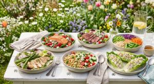 Chicken Pesto Pasta Salad: Leftover grilled chicken, whole-wheat pasta (or chickpea pasta), pesto, cherry tomatoes, and mozzarella pearls.